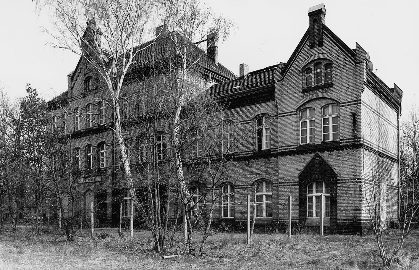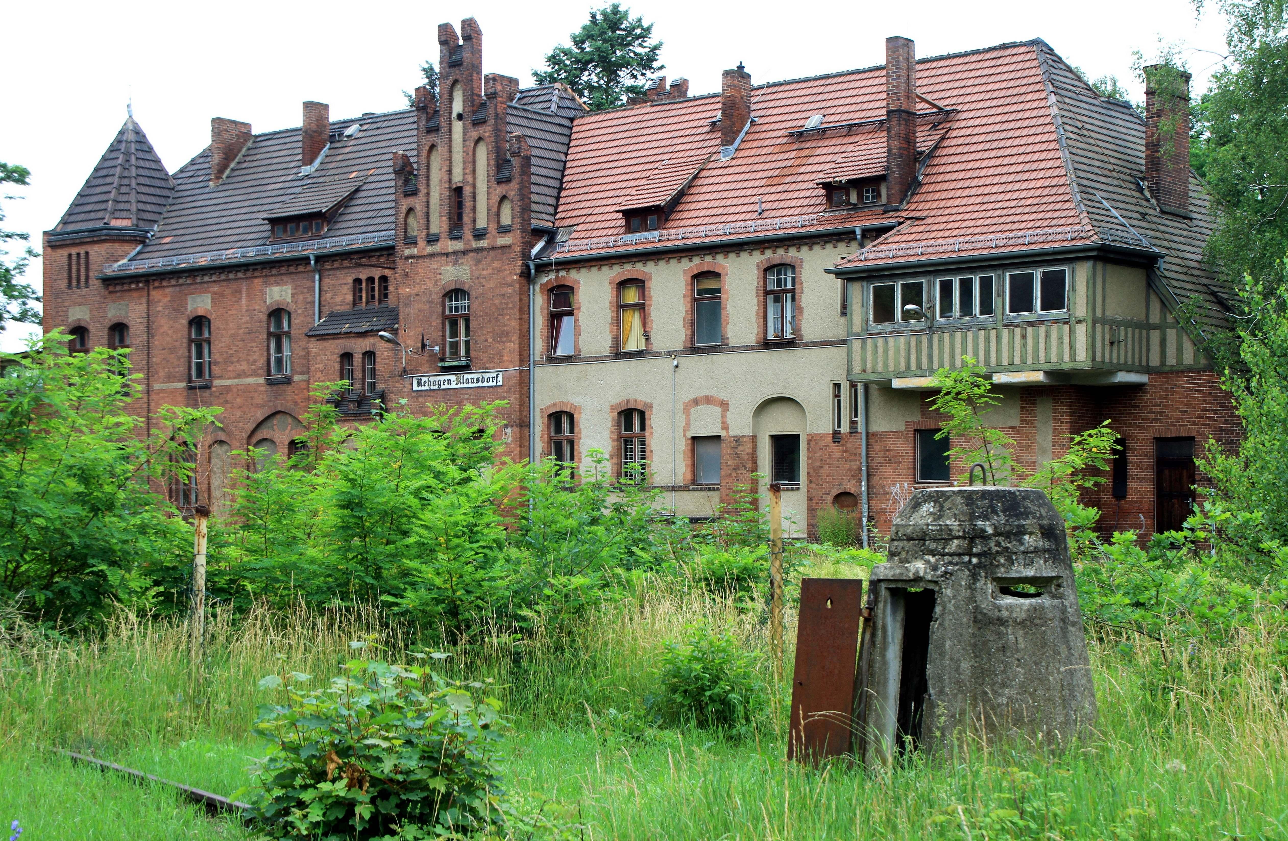 Ladestraße und um die Erfrischungshalle], - Rehagen-Klausdorf (Empfangs-/Dienstgebäude mit anschließendem Wohntrakt und Stellwerksannex,