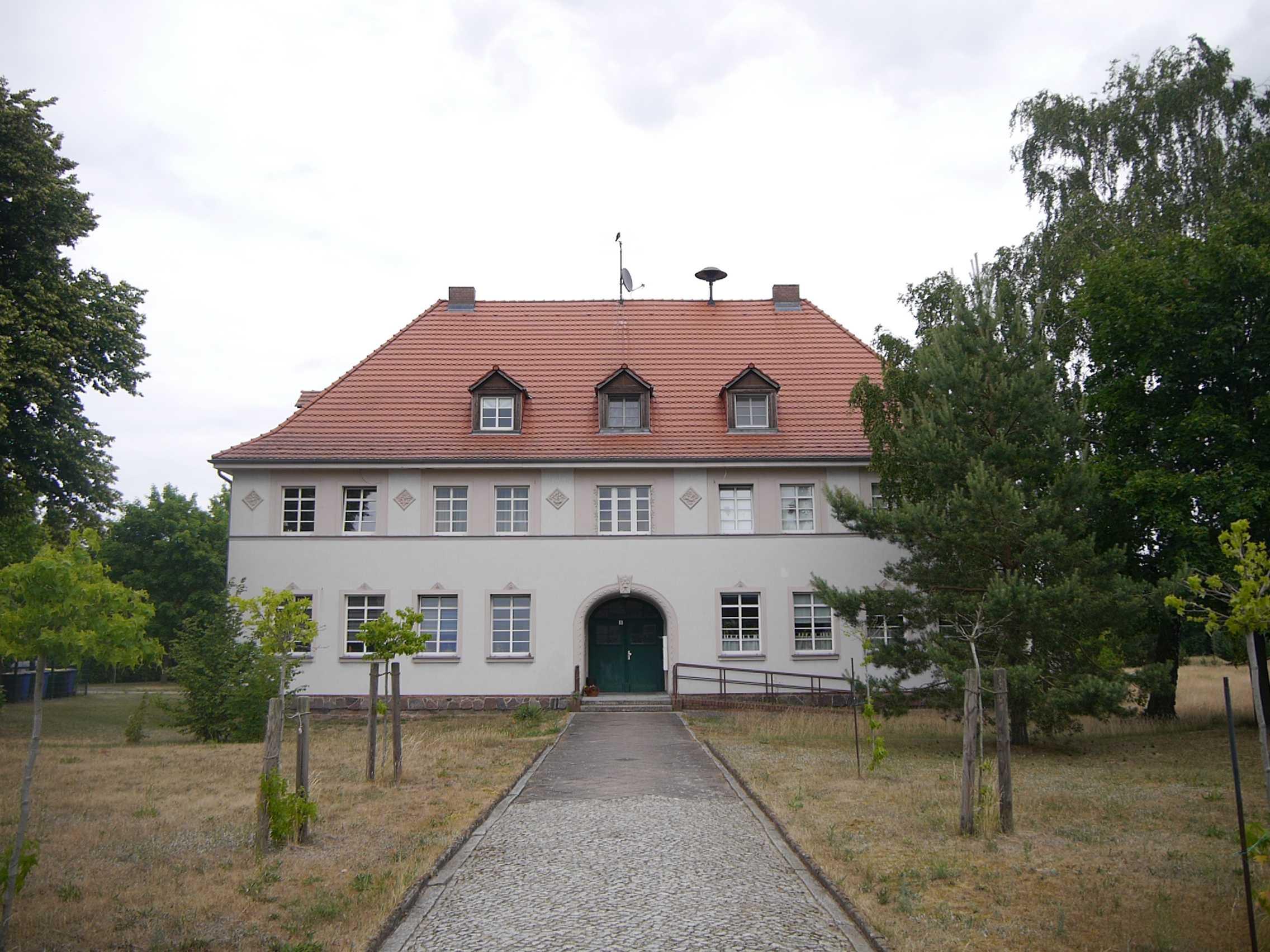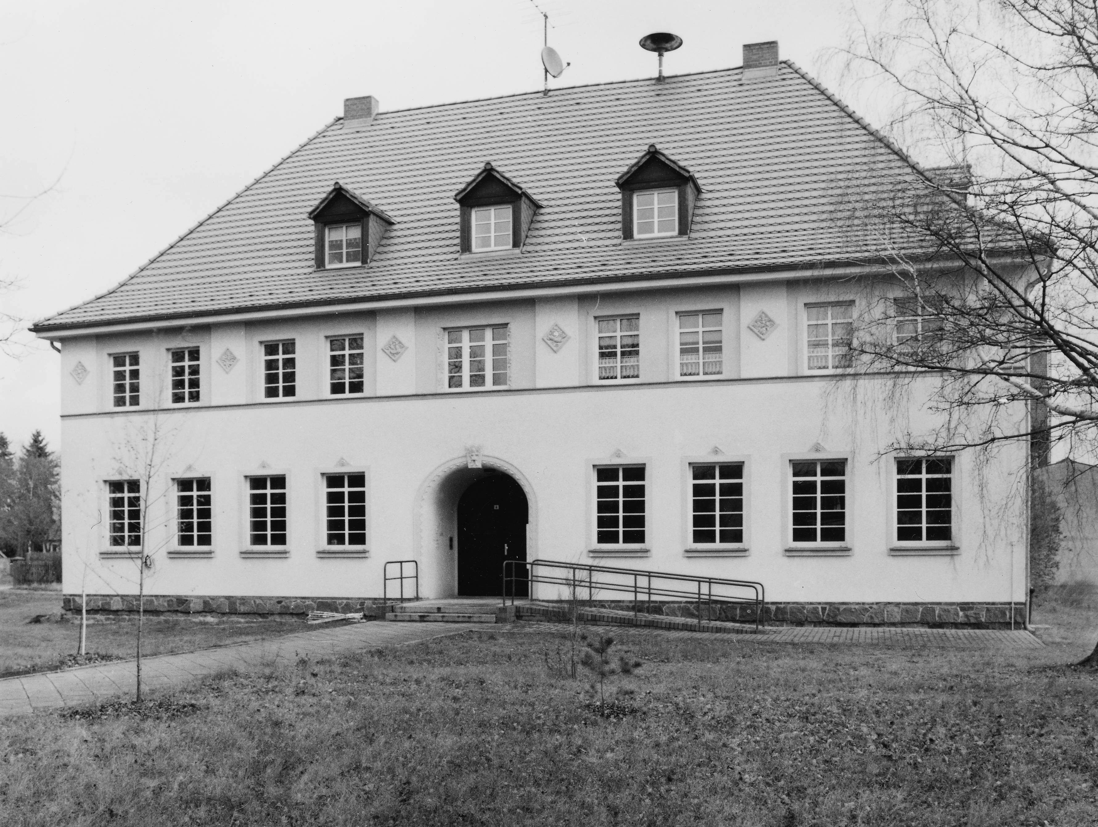 Schulhaus mit Zuwegung und Nebengebäude |