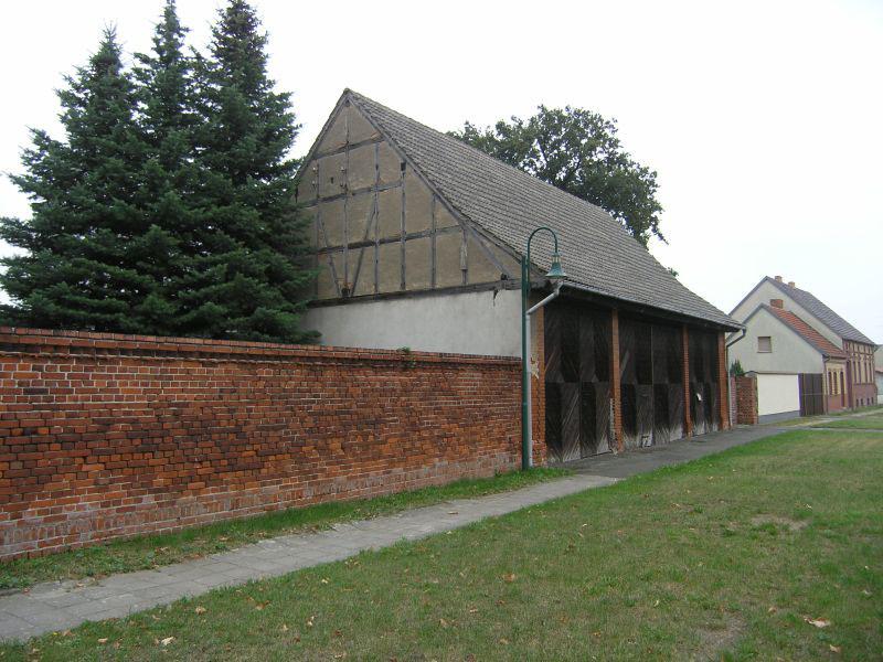 mit Eiskeller, dorfseitiger Einfriedungsmauer und Remise