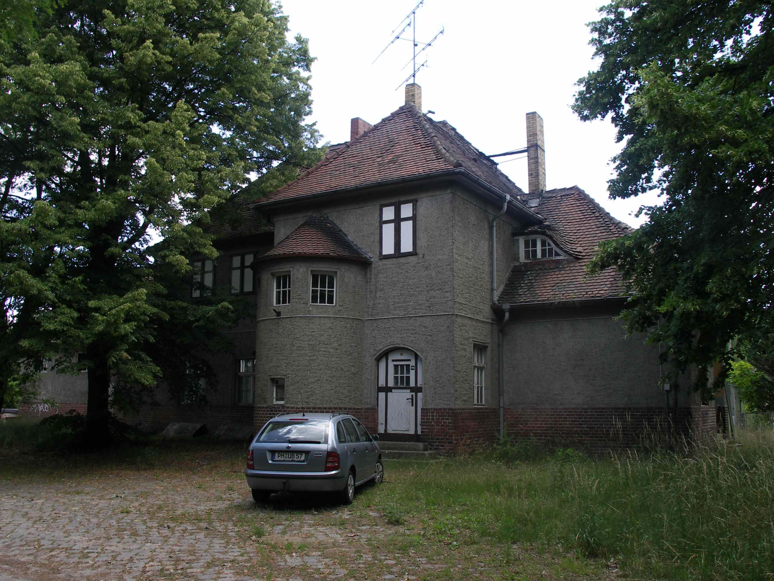 Bahnhof Medewitz mit umgebender Pflasterung und Nebengebäude |