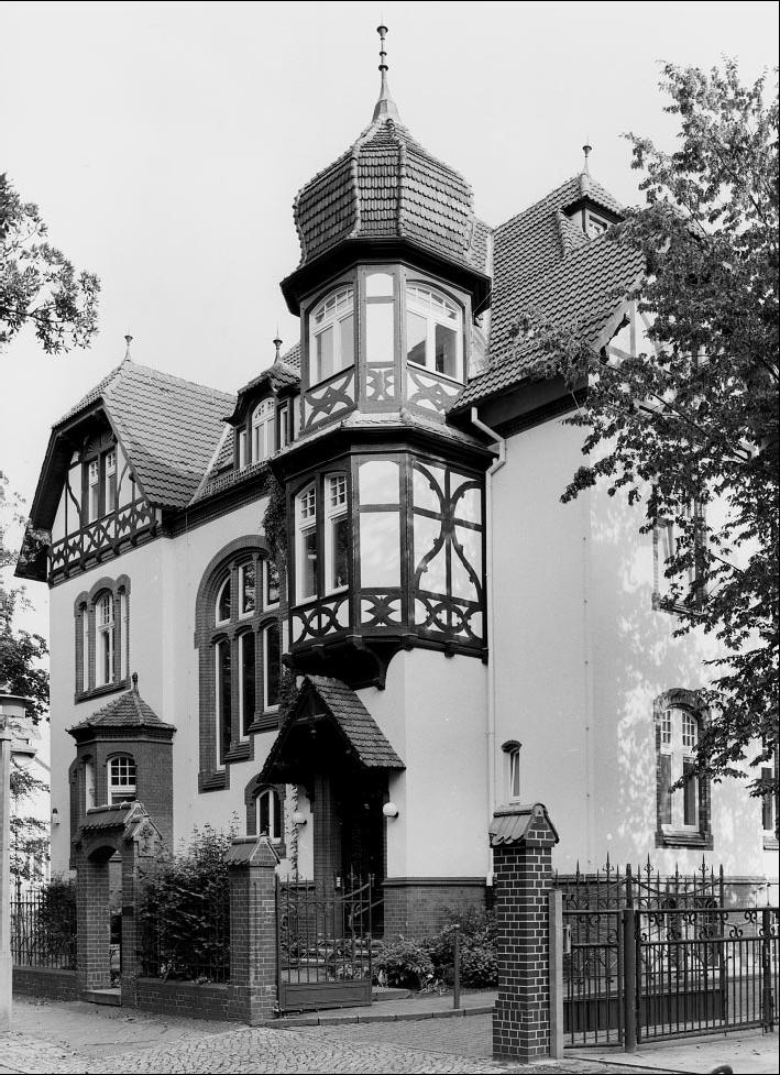 Villa mit Gartengrundstück und straßenseitiger Einfriedung |