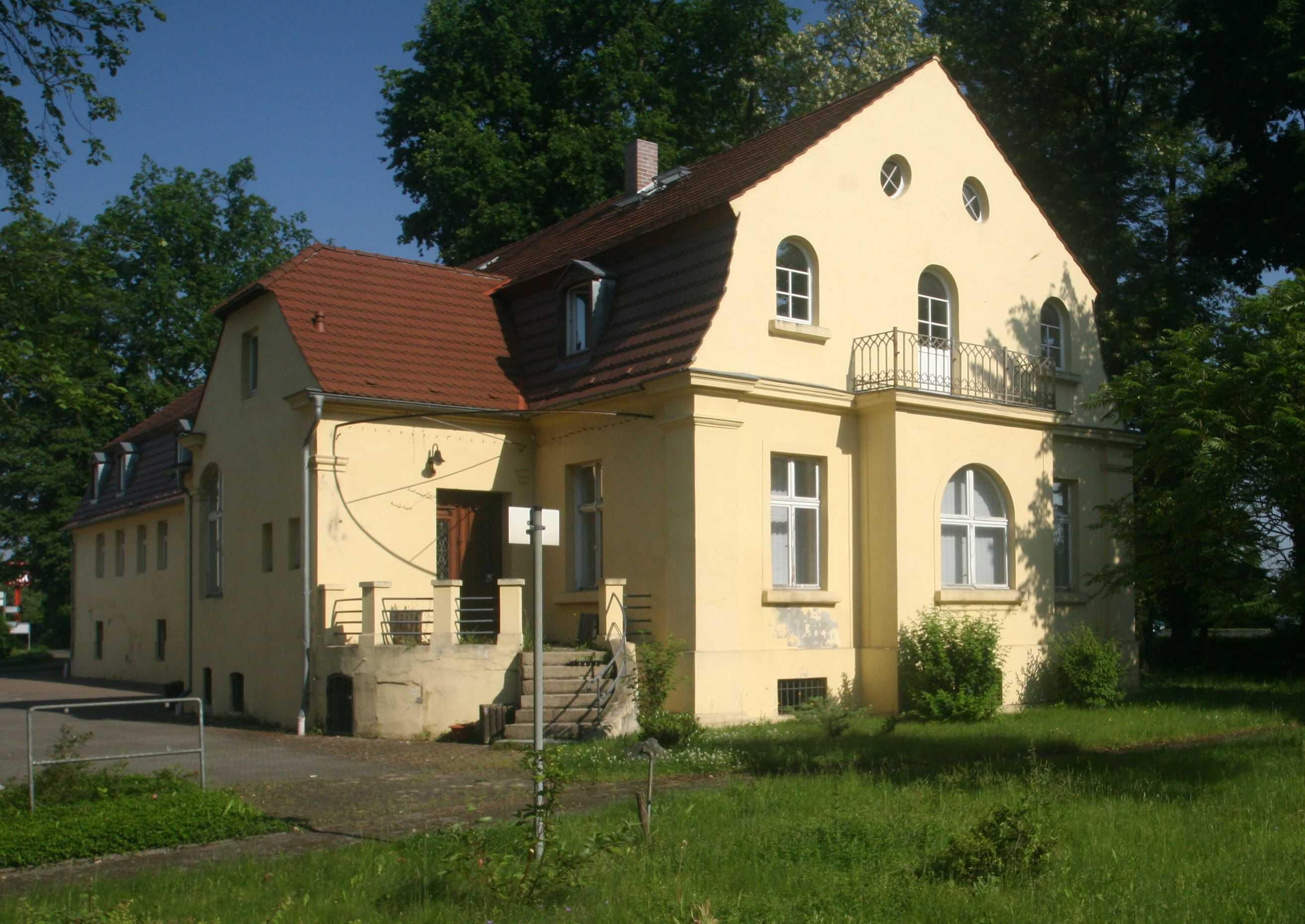 Tuchfabrik F. M. Huschke, bestehend aus Wohngebäude, Pförtnerhaus mit einem Fragment der Einfriedung, einem Teil des Fabrikgebäudes