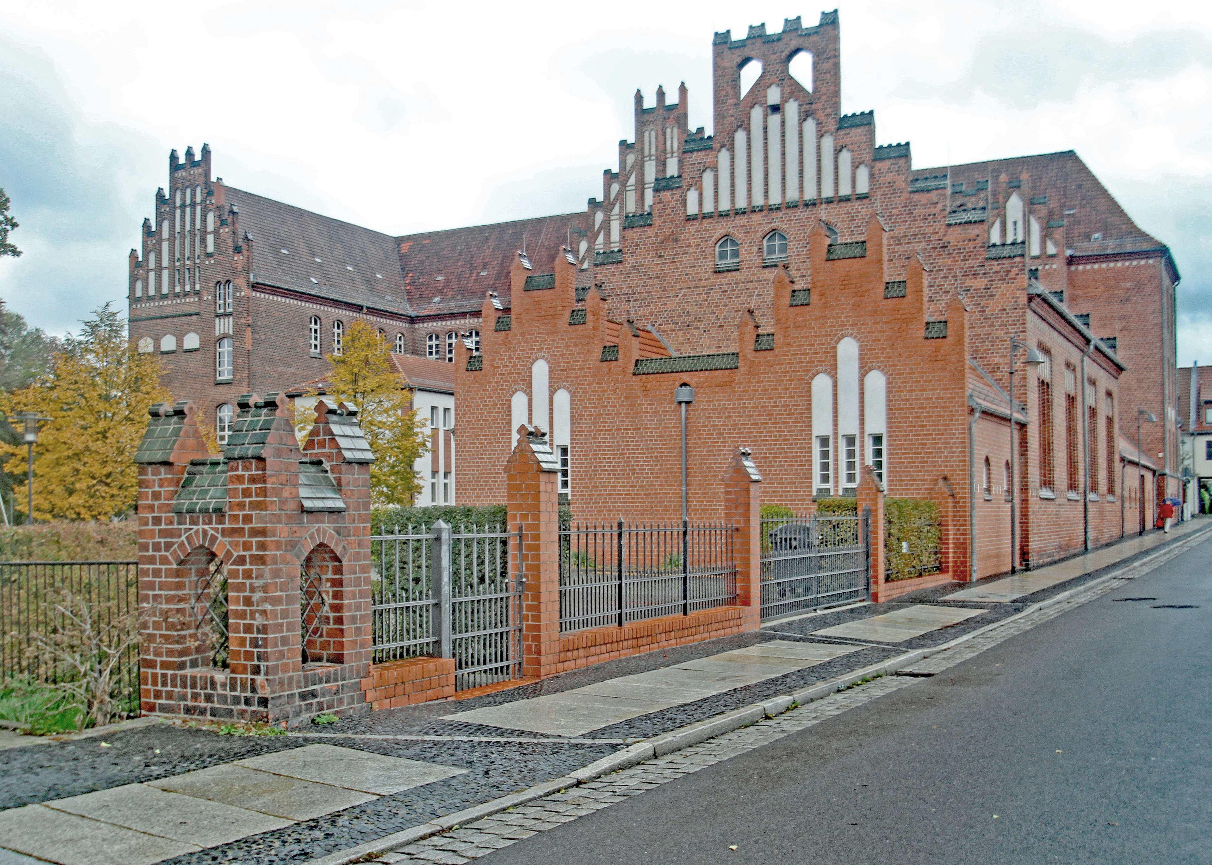 Schulgebäude (ehemalige Mädchenschule) mit Turnhalle und Einfriedung |