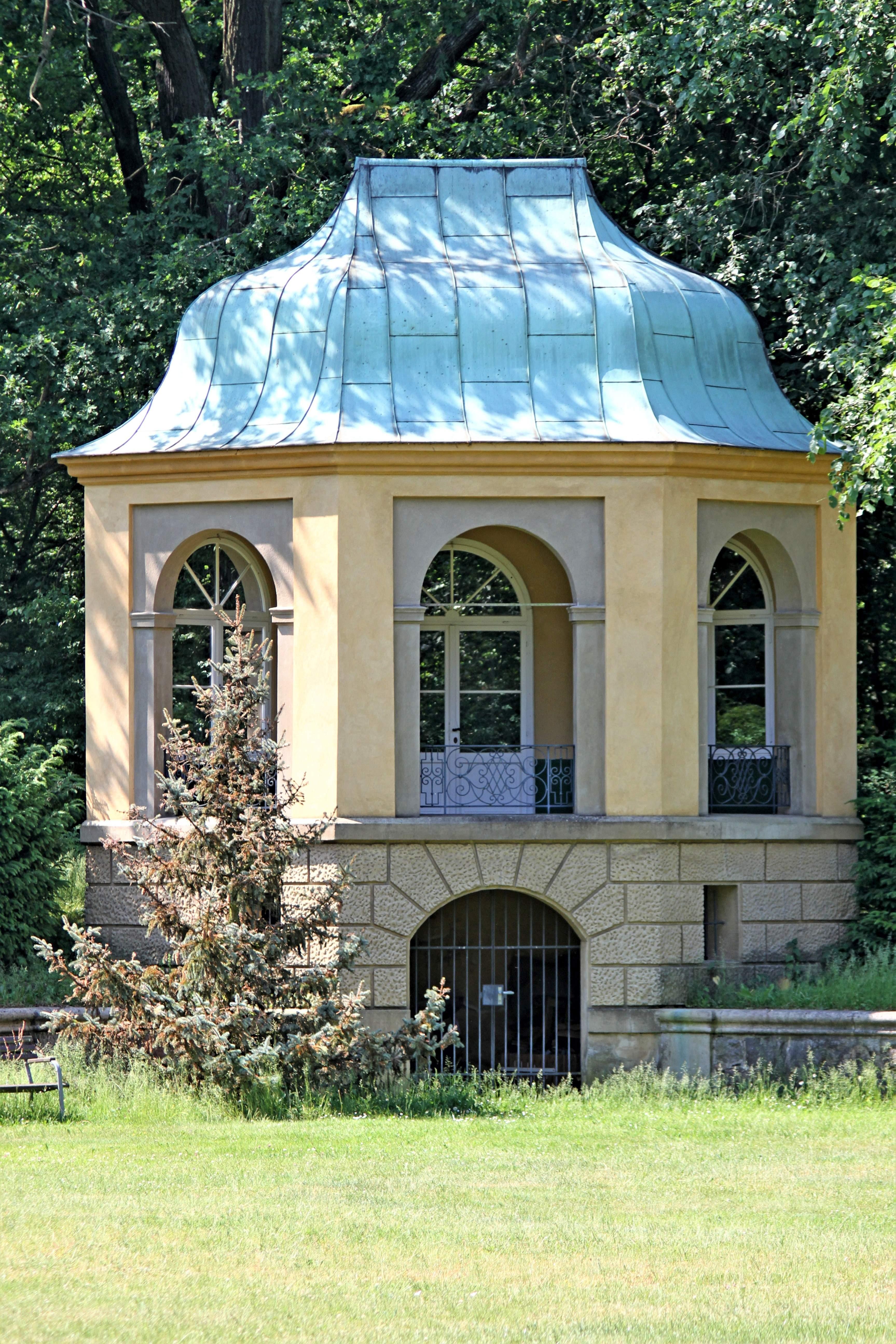 Eiskeller, Park mit Gartenpavillon und Mausoleum sowie Wohnhaus (Franz-Hitze-Straße 2, 4) und Baukörperhülle des Wirtschaftsgebäudes