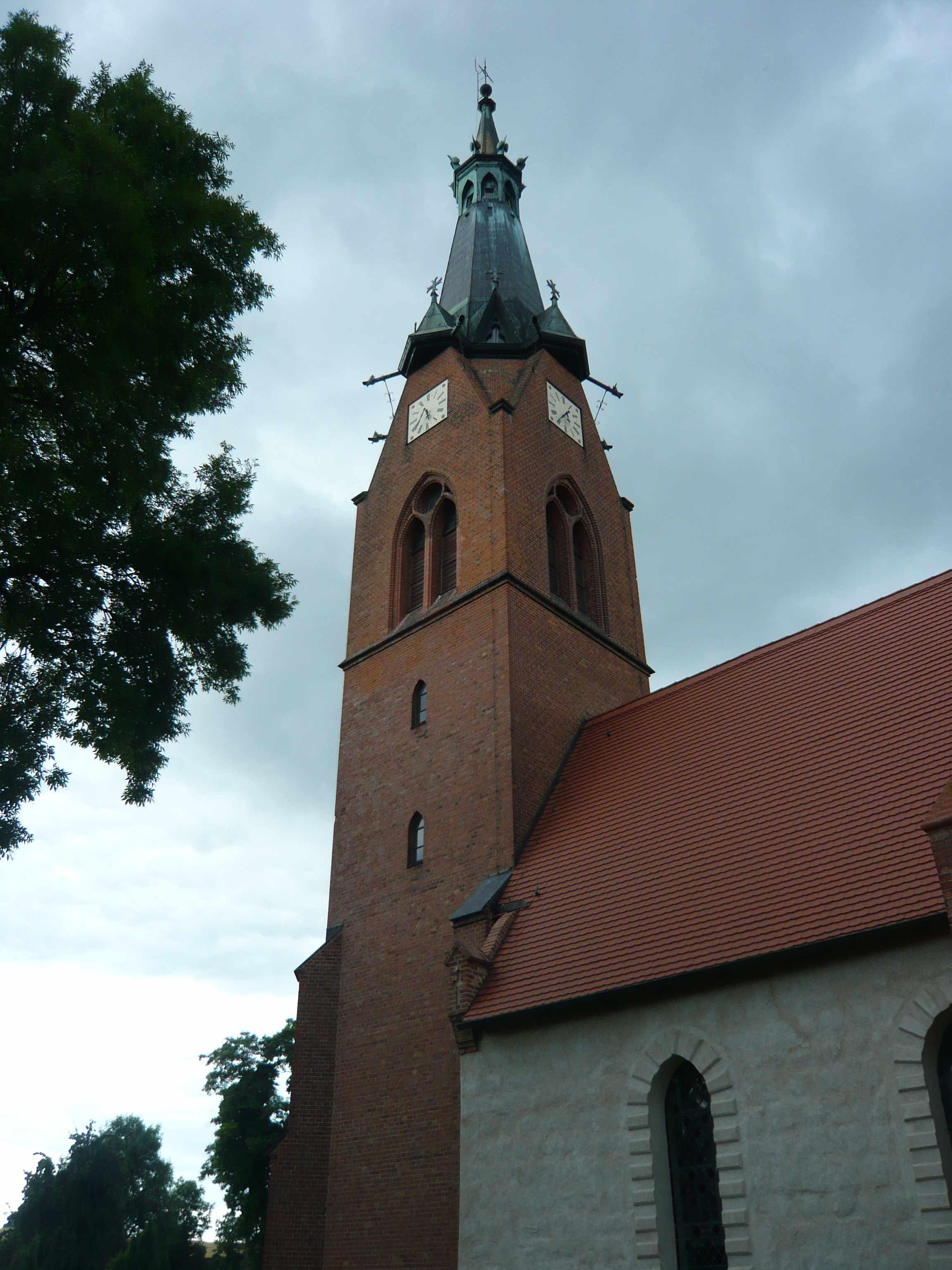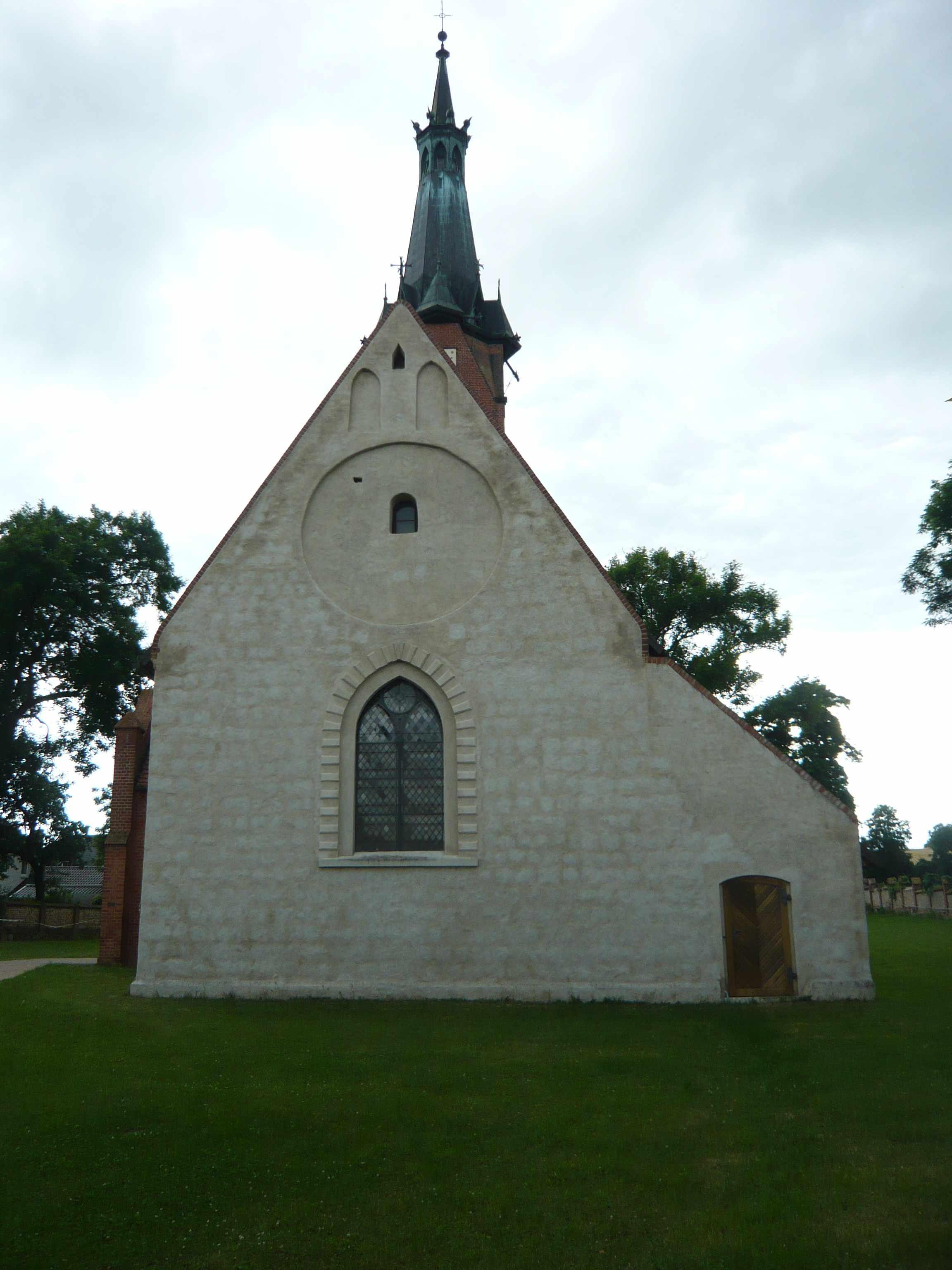 Vorhalle, Ziegel, massiv, 1890, im Süden, mit verkupfertem achteckigem Spitzhelm mit Wasserspeiern |