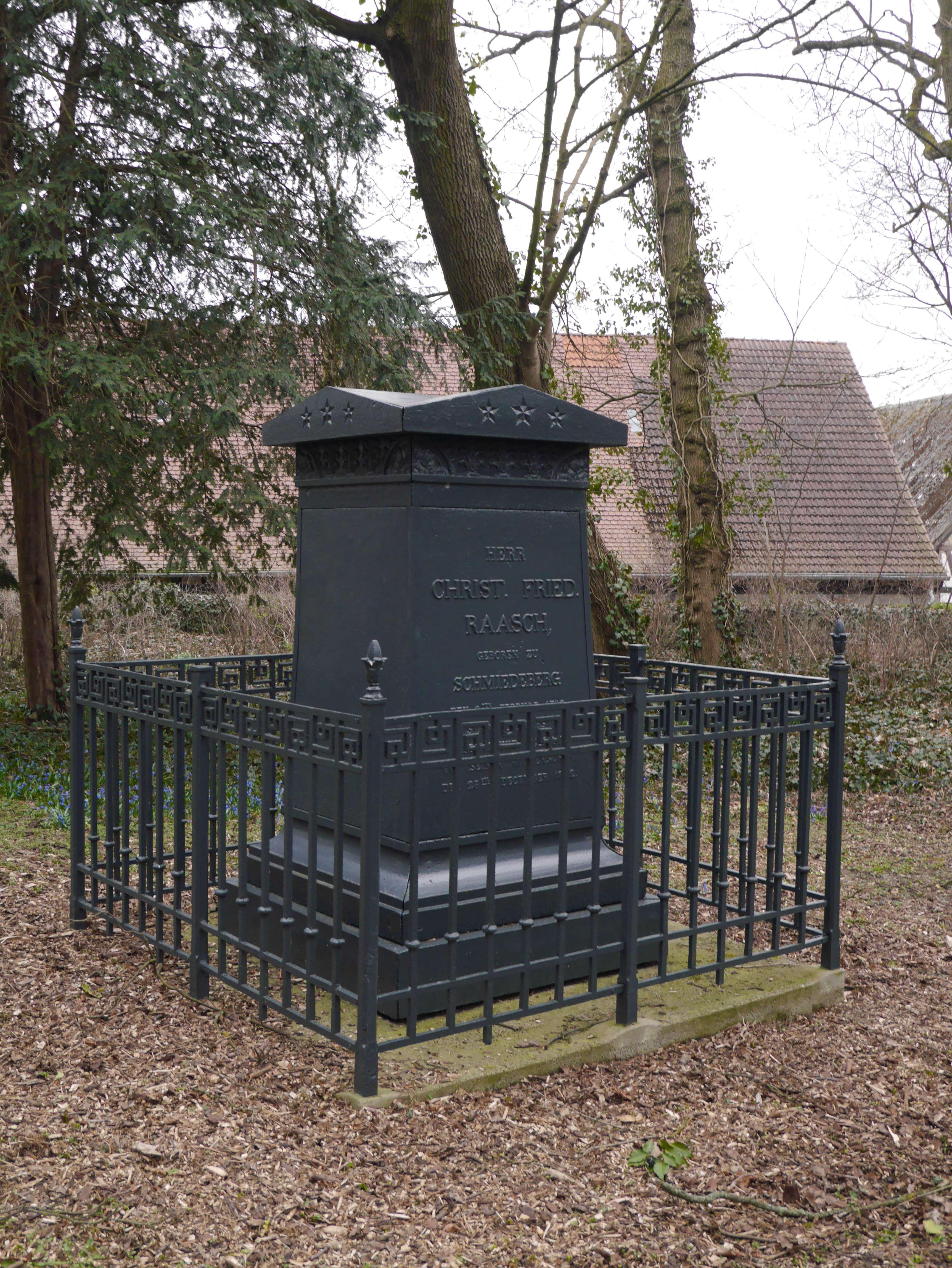 Bezeichnung 9990:Text Kirche mit Kirchhof mit zwei Grabkreuzen der Familie von der Hagen, dem Grabmal Chr. Fr. Raasch und Kirchhofsmauer