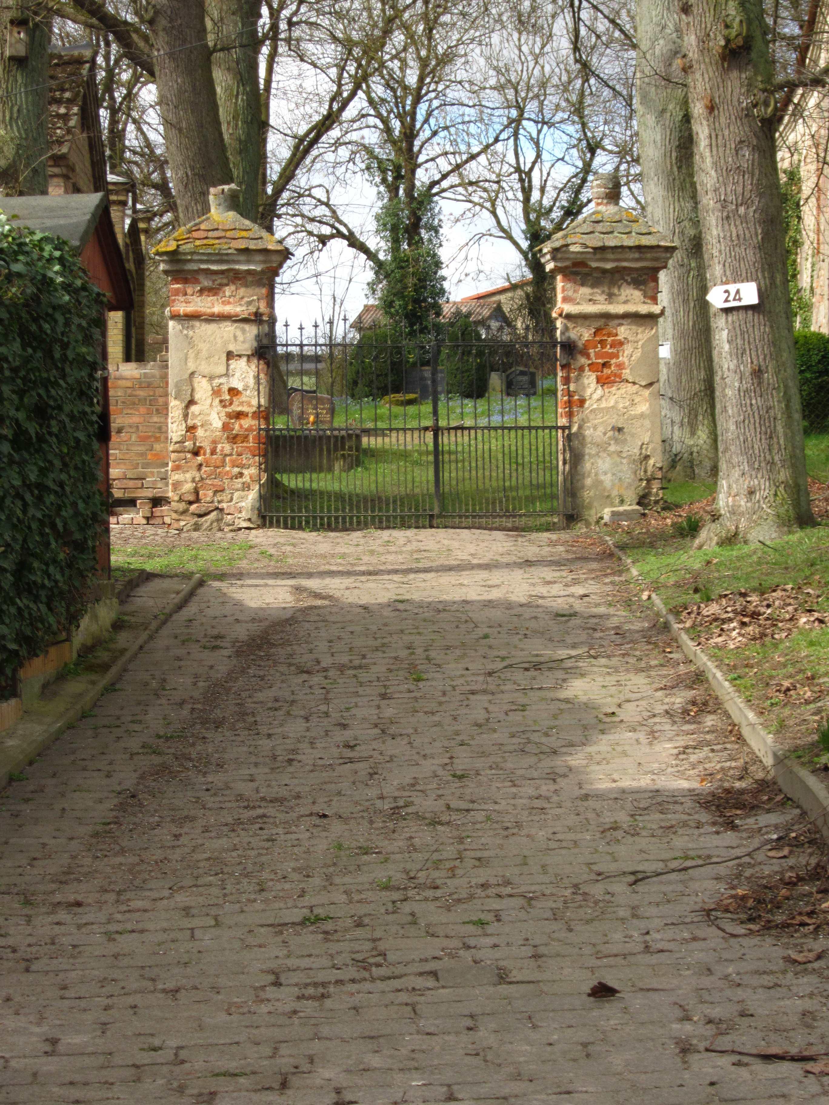 Kirche sowie Kirchhofportal, Leichenhalle und Erbbegräbnis der Familie Flügge |