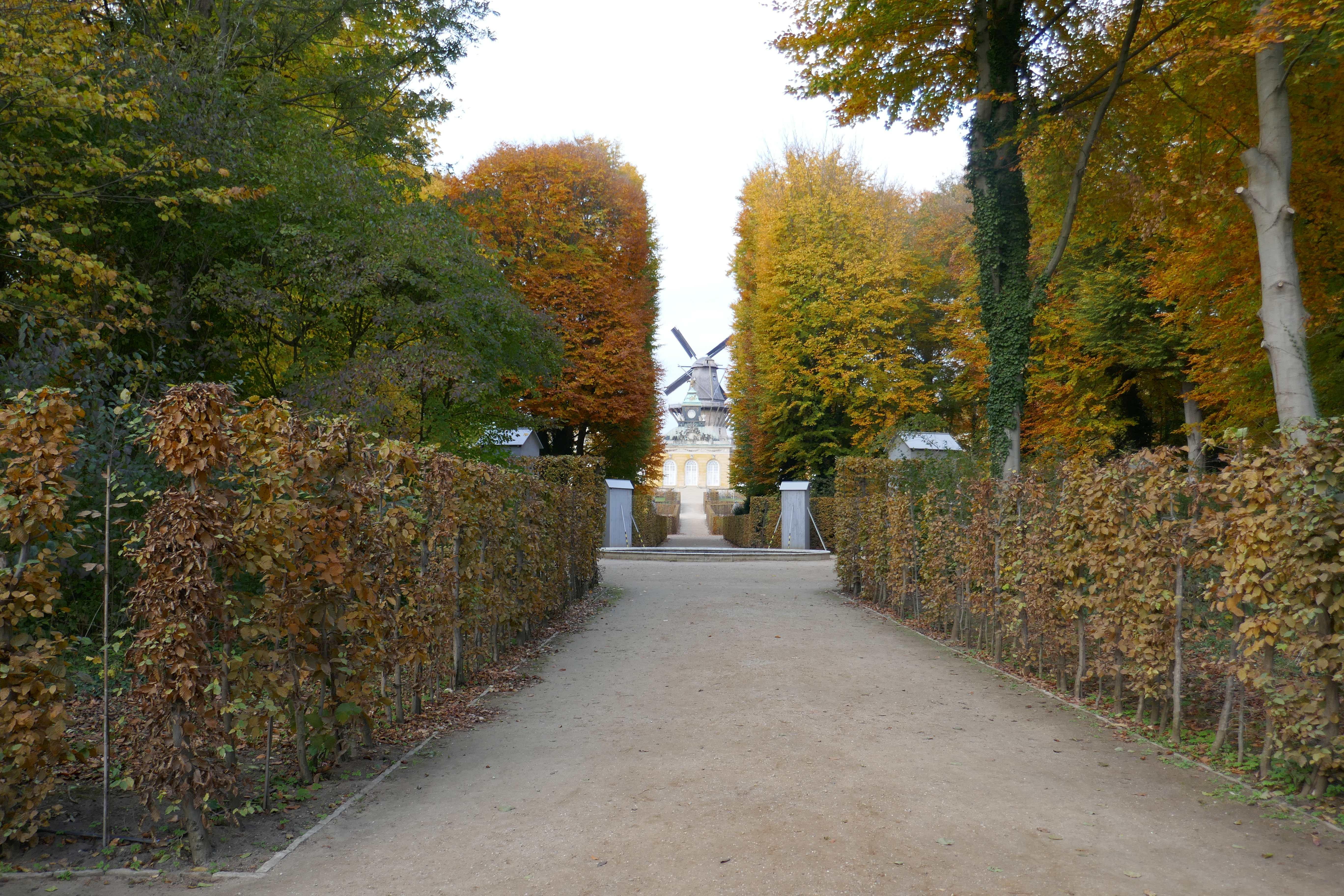 und Exedra "Römische Bank" - Historische Mühle , Mühlenhaus mit Remise und Waschhaus, Substruktion und Felsentor (Maulbeerallee 5) - Gaststätte "Zur historischen Mühle " (Zur Historischen Mühle 2) - Marstall (heute Besucherzentrum, An der Orangerie 1) und Kutscherhaus "Jagdhaus" - Orangerie (An der Orangerie 3-5)