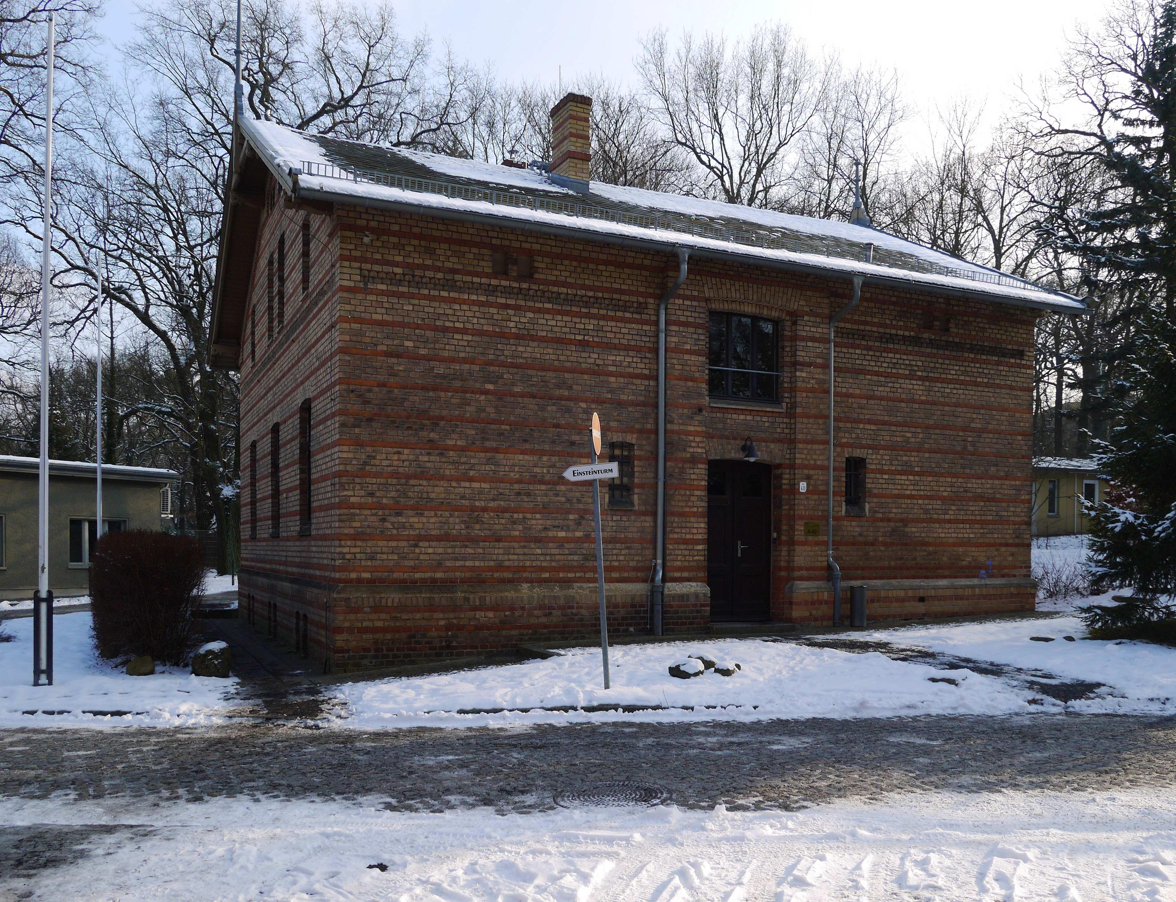 | Bezeichnung | 9990:Text | Königliche Observatorien für Astrophysik, Meteorologie und Geodäsie mit Erweiterungen (heute Wissenschaftspark Albert Einstein): Toranlage und Pförtnerhaus (A 41), Maschinen- und Pumpenhaus (A 37), Maschinistenhaus (A 40), Brunnenhaus (A 39); Astrophysikalisches Observatorium mit Hauptgebäude (A 31), Kuppelgebäude für den photographischen Refraktor (A 32), Kuppelgebäude mit Großem Refraktor (A 27), Einsteinturm mit Turmteleskop (A 22), Gebäude für Refraktor (A 23), Direktorenwohnhaus (A 33), Beamtenwohnhaus (A 26), Observatorenwohnhäuser (A 3, A 6), Assistentenwohnhaus (A 5), Wohnhaus "Freundlichhaus" (A 34), Maschinenhaus (A 28), Wirtschaftsgebäude mit Hof (A 36); Laborgebäude für magnetische und Strahlungsmessungen (A 14) mit Nebengebäude (A 15); Meteorologisch-Magnetisches Observatorium mit Hauptgebäude (A 62), Nebengebäuden (A 63, A 64) und Archiv, Messfeld, Magnetisches Observatorium (A 58), Gerätehaus (A 61), Waldhaus (Absoluthaus); Geodätisches Institut mit Hauptgebäude (A 17), Erdbebenwarte (A 18), Helmertturm (A 7), Meridianhäuser (A10, A 13), Miren, Messbahn (A 7), Instrumentenhaus (A 9), Observatorium für Winkelmessungen (A 11) sowie Außenanlagen |
