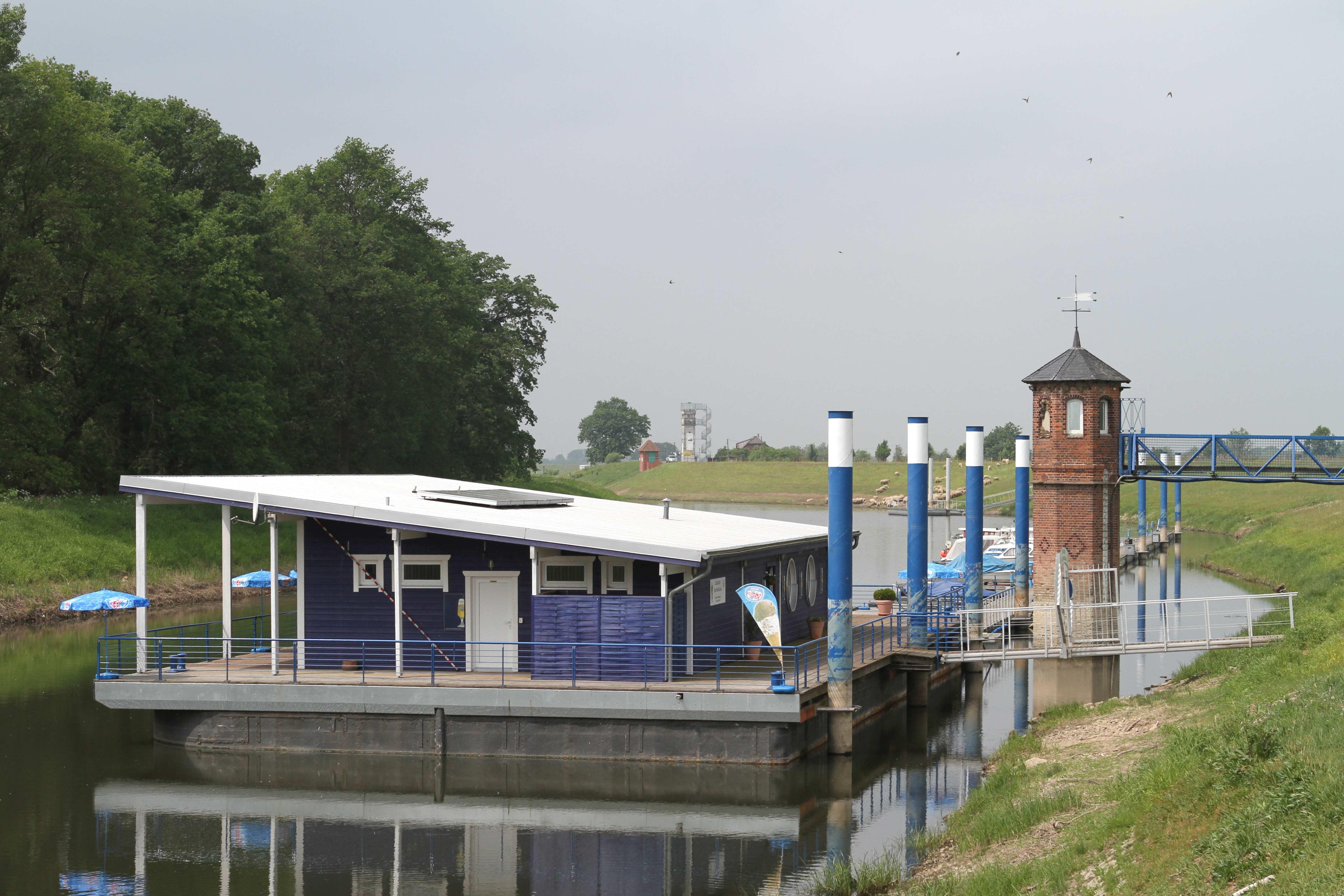Bezeichnung 9990:Text Pegelturm, im Naturhafen „Lenzer Haken“