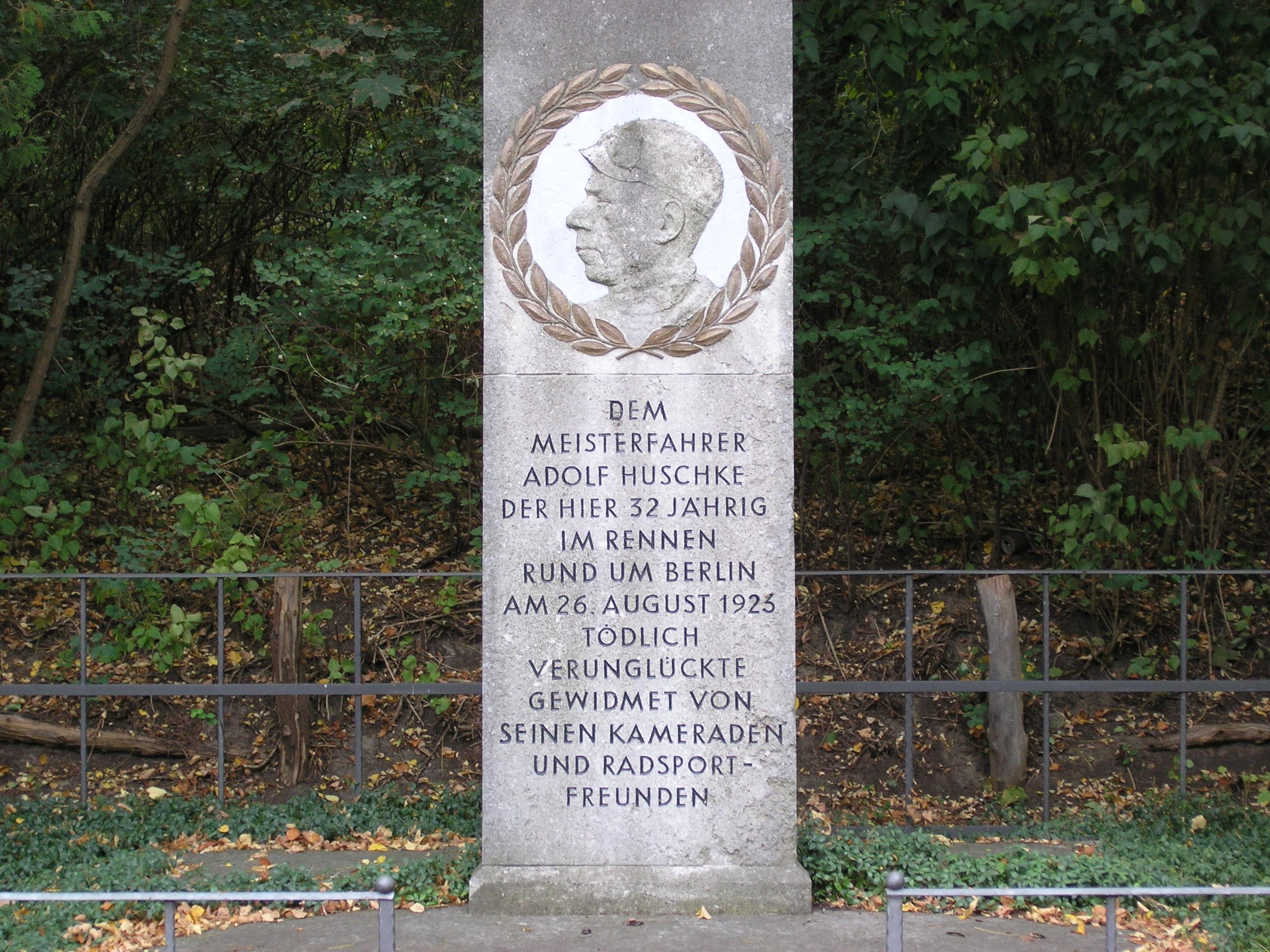 Huschke beim Rennen "Rund um Berlin" einen schweren Sturz, dem er am 28. August erlag. Das Denkmal wurde über eine Spendensammlung