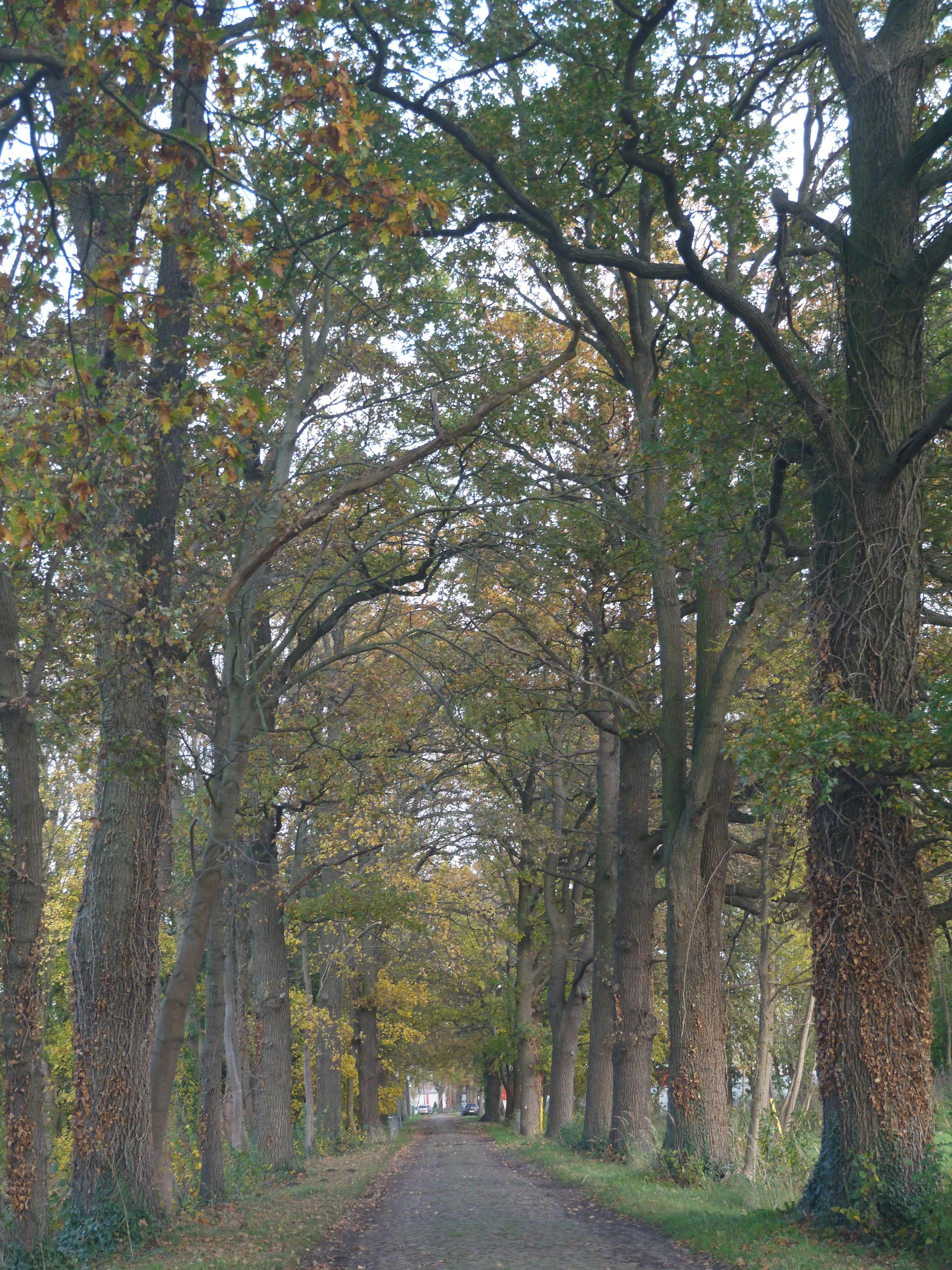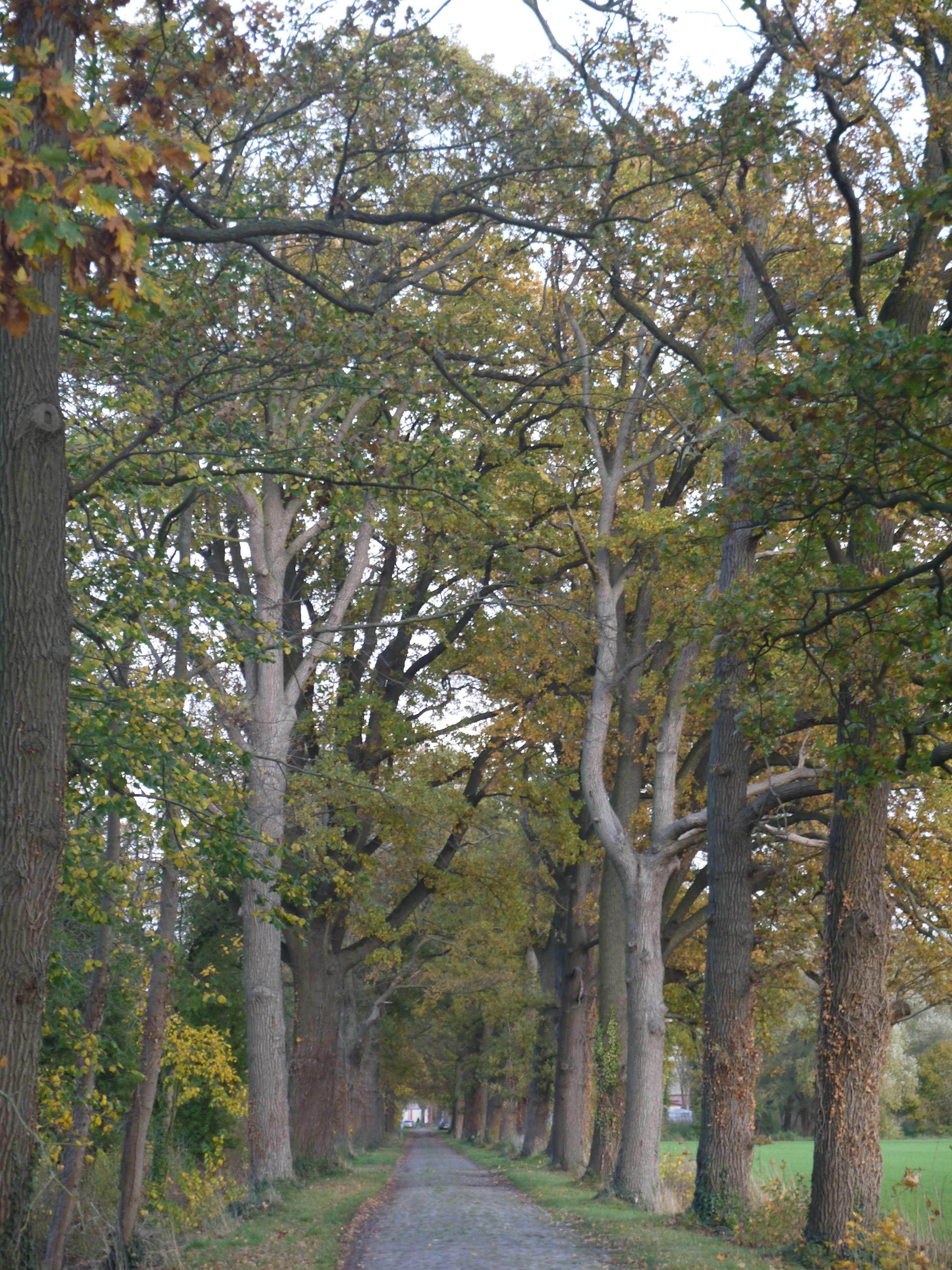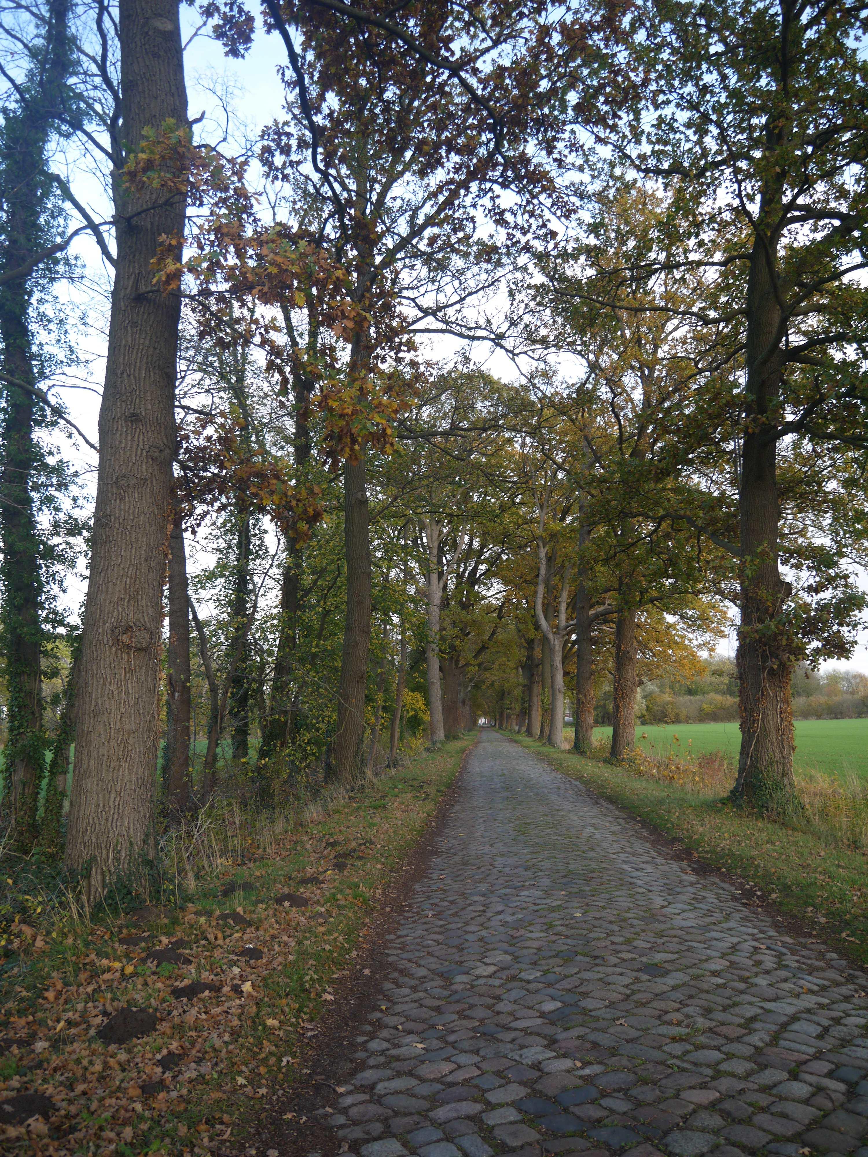 Pflasterstraße mit Eichenallee |